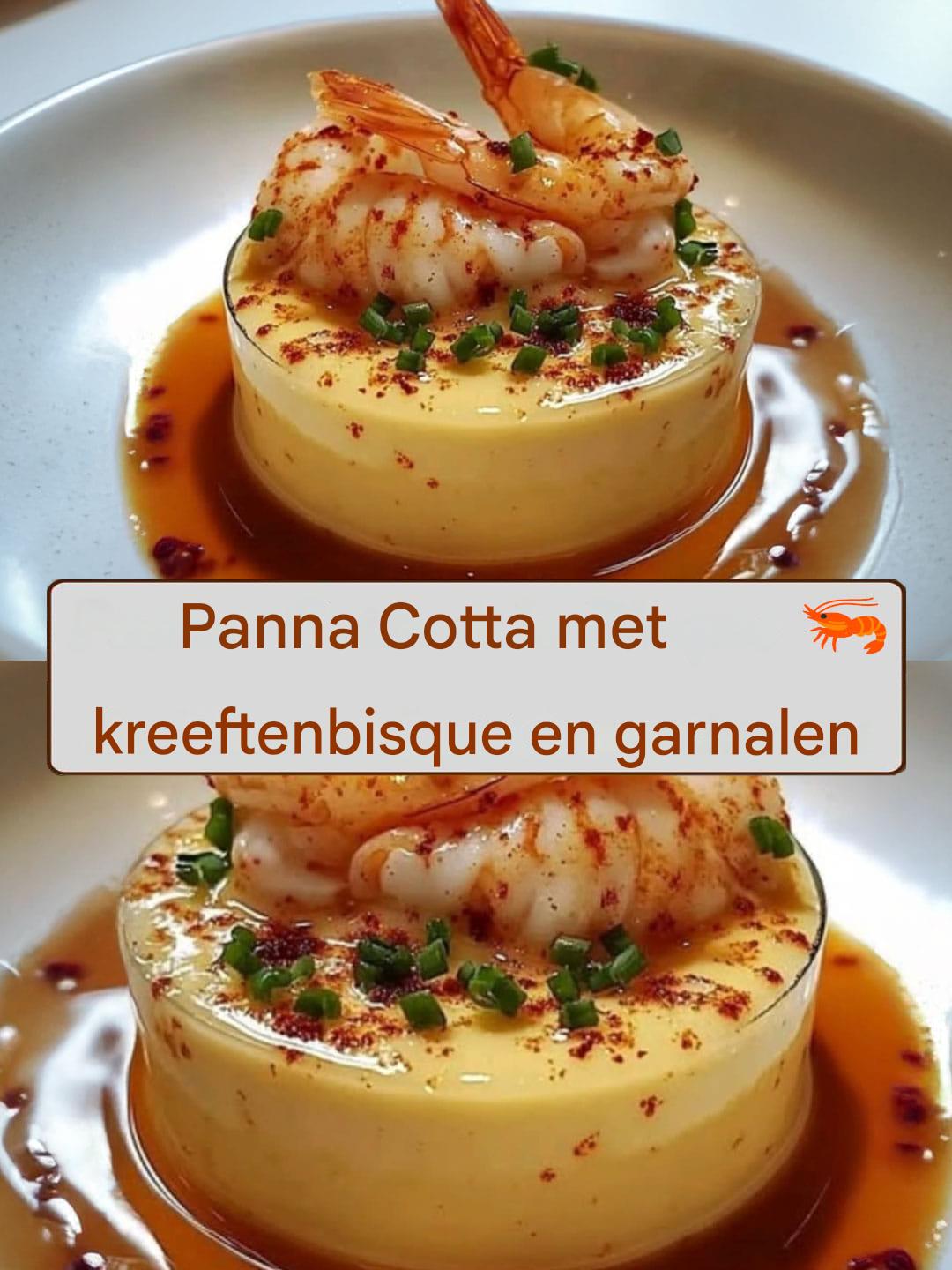 Een elegant en verrassend voorgerecht: romige panna cotta gecombineerd met een rijke kreeftenbisque en sappige garnalen in een vleugje cognac. Perfect voor een verfijnd diner of speciale gelegenheid. 🍤✨