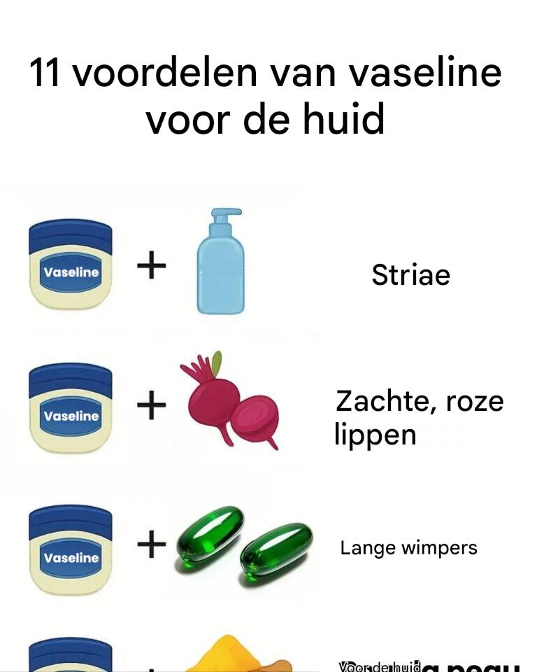 Dat potje dat je al hebt kan je schoonheidsroutine transformeren... Wat als één product je huid kan hydrateren, beschermen, kalmeren en zelfs verfraaien? Je hoeft geen fortuin uit te geven aan cosmetische behandelingen: de oplossing kan verstopt liggen in dat goede oude potje vaseline, vergeten onderin een lade. Deze vaak onderschatte klassieker is eigenlijk een Zwitsers zakmes voor de huid... Hier zijn 11 geweldige tips die je dagelijks leven kunnen veranderen.
