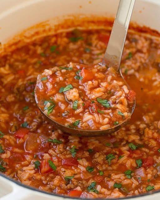 Hartige en smaakvolle gevulde paprikasoep met rundergehakt en rijst