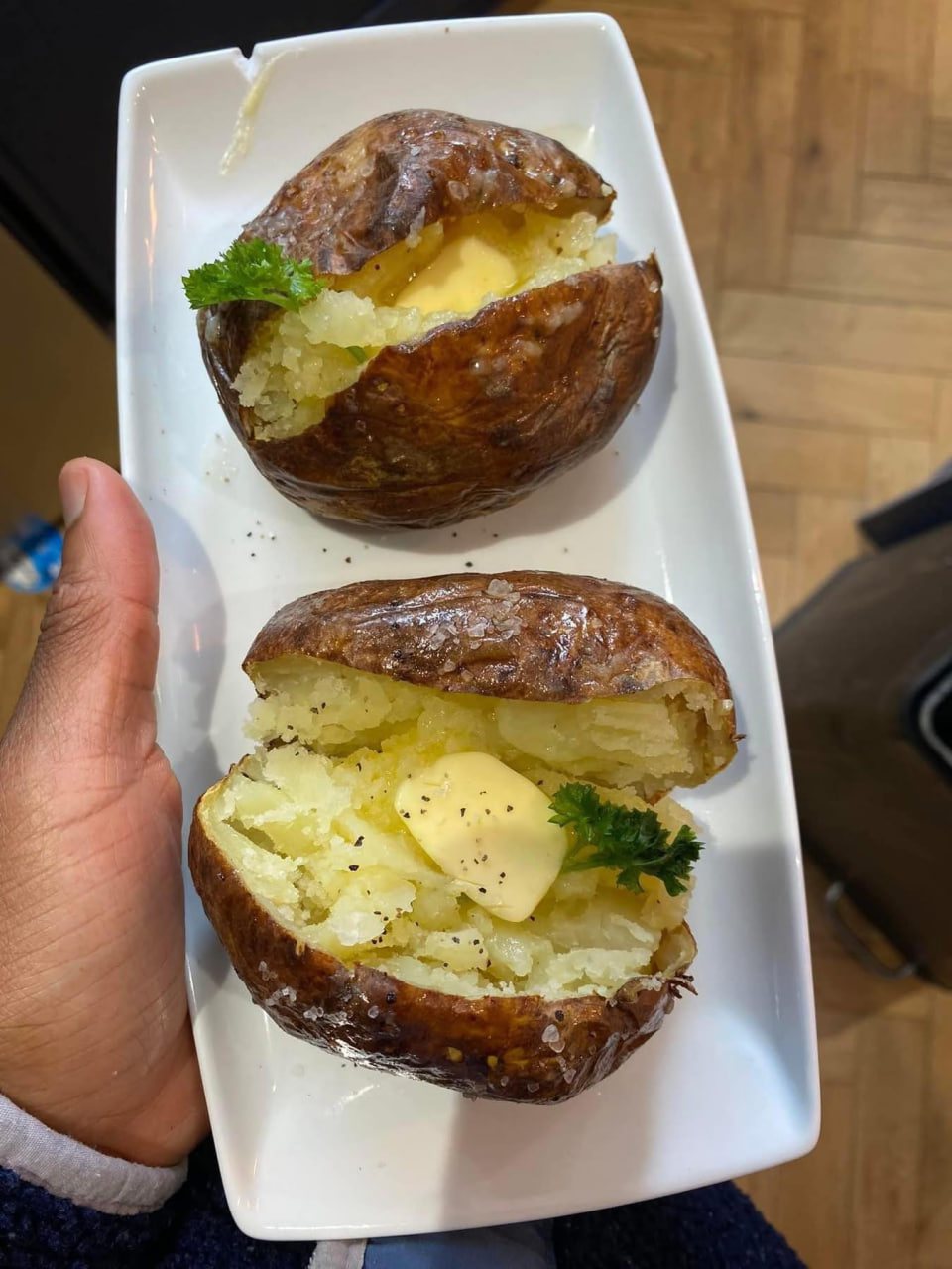 Door ze in de airfryer te bereiden, wordt je gepofte aardappelervaring nóg beter! Waarom? De schil is zo knapperig en de binnenkant zo zacht en luchtig.
