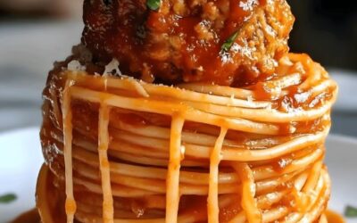 Een Verbluffende Twist op Klassieke Spaghetti & Gehaktballen! Maak indruk op je gasten met deze spectaculaire spaghetti toren, een heerlijke…