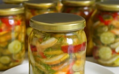 Komkommersalade met paprika en uien, perfect voor potten Ingrediënten: 1 kg veldkomkommers 1 ui 1 rode paprika 1 gele paprika…