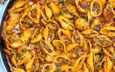 Ingrediënten: ▢ 225 gram middelgrote pastaschelpen ▢ 1 eetlepel olijfolie ▢ 450 gram rundergehakt ▢ 1 kleine zoete ui (in…