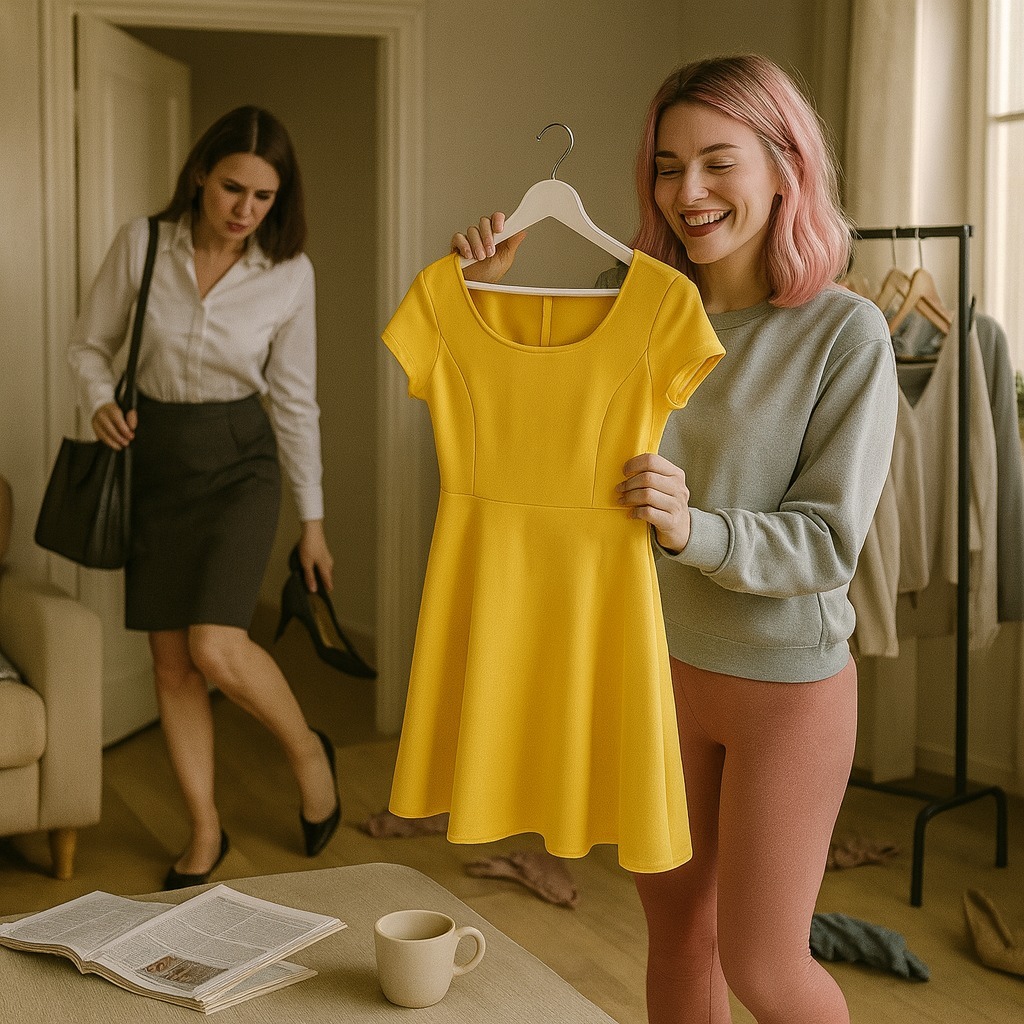 — Ach, ik blijf niet lang! — wuifde haar schoonzus weg en gleed moeiteloos de woonkamer in. — Stel je voor, morgen een sollicitatiegesprek, en ik heb niks om aan te trekken!