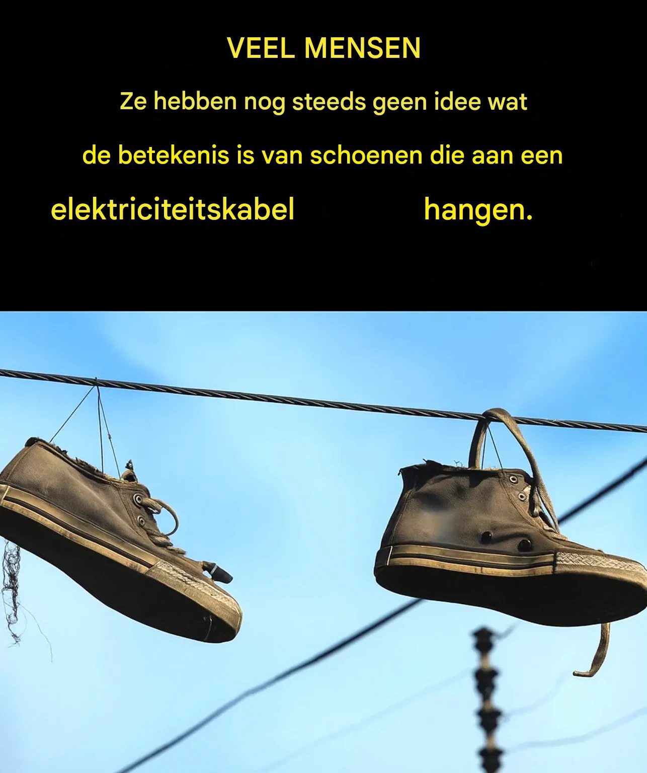 Wie heeft er tijdens een wandeling over straat niet een paar sneakers of laarzen aan een elektriciteitskabel zien hangen? Een intrigerend, bijna poëtisch tafereel… maar ook vol mysterie. Is het een geheim symbool, een verborgen boodschap, of gewoon een impulsieve actie? Achter dit wereldwijde fenomeen gaan verschillende verhalen schuil – sommige serieus, andere veel luchtiger.